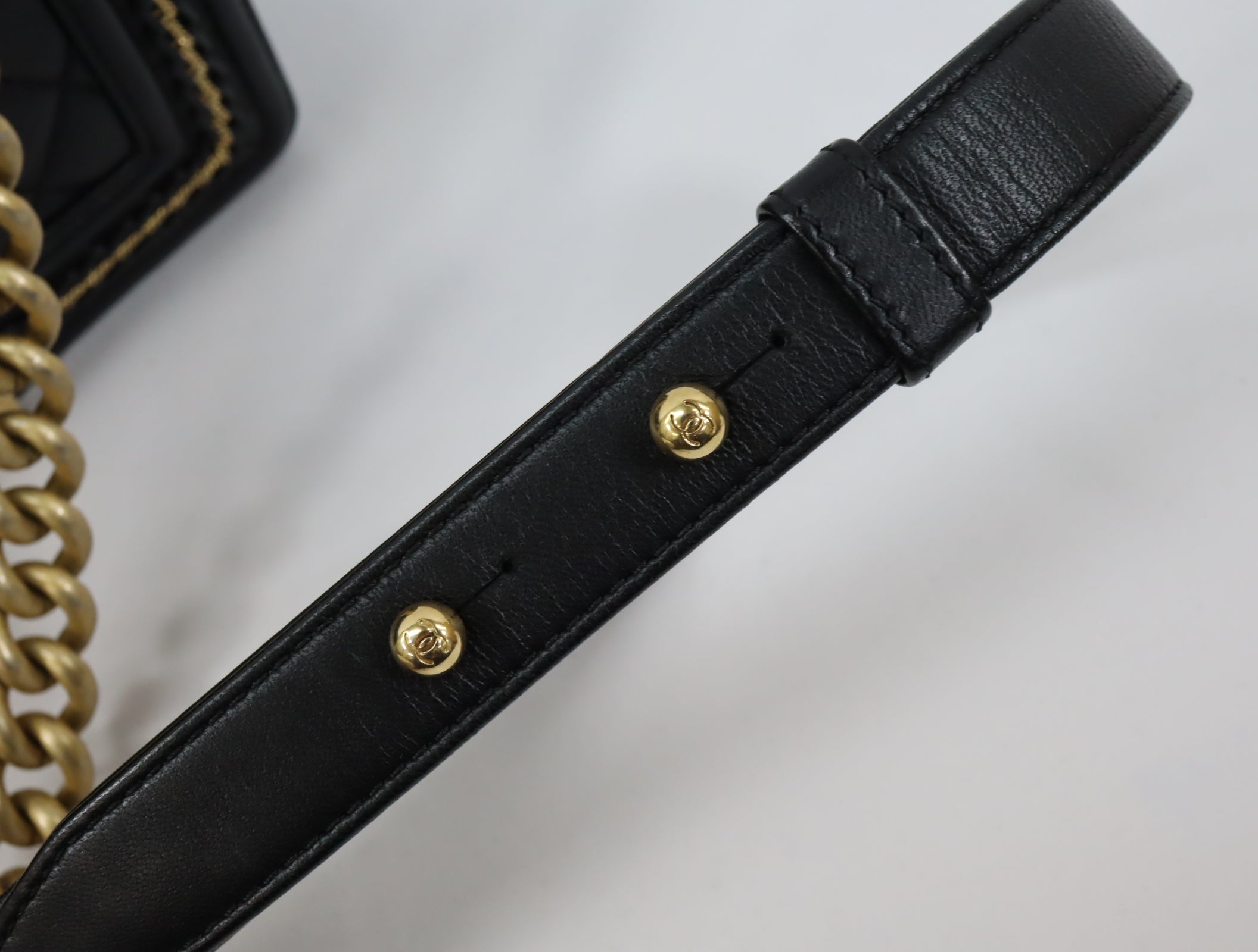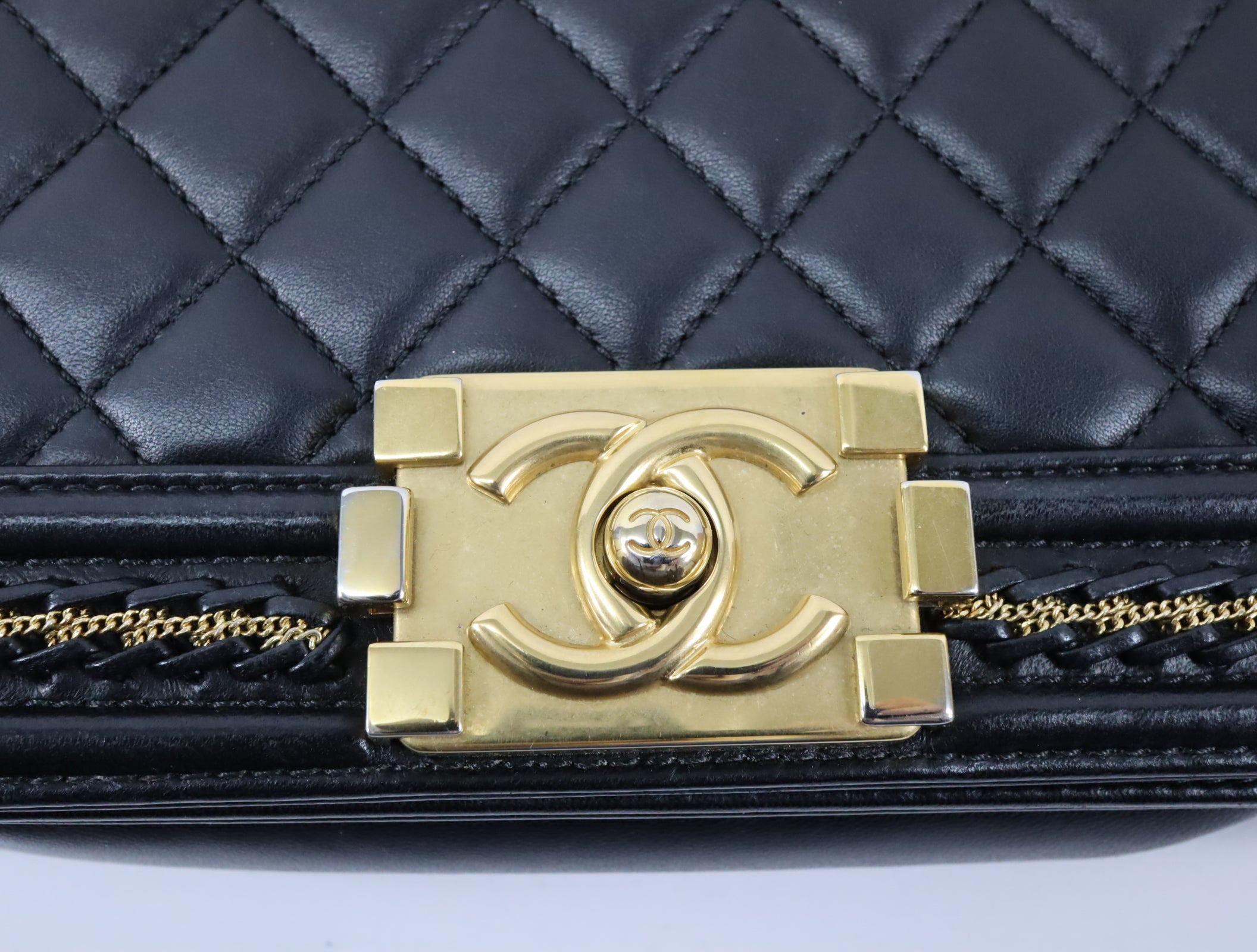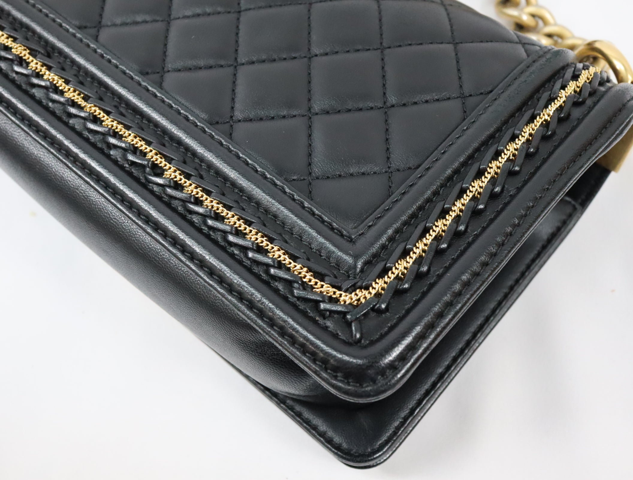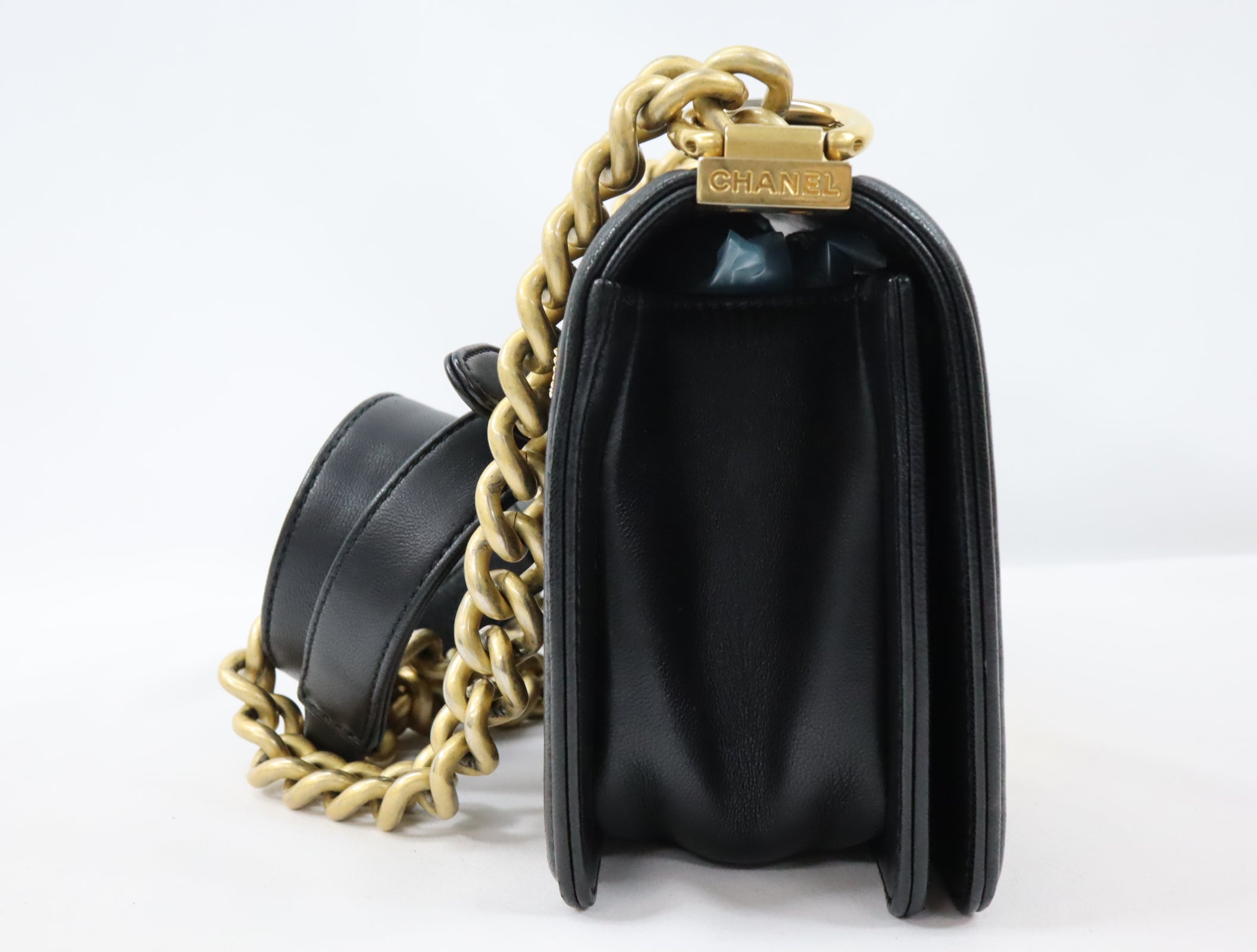 Pre-Owned #20086 CHANEL Boy Chanel Small chain Shoulder Bag Lamb skin A67086