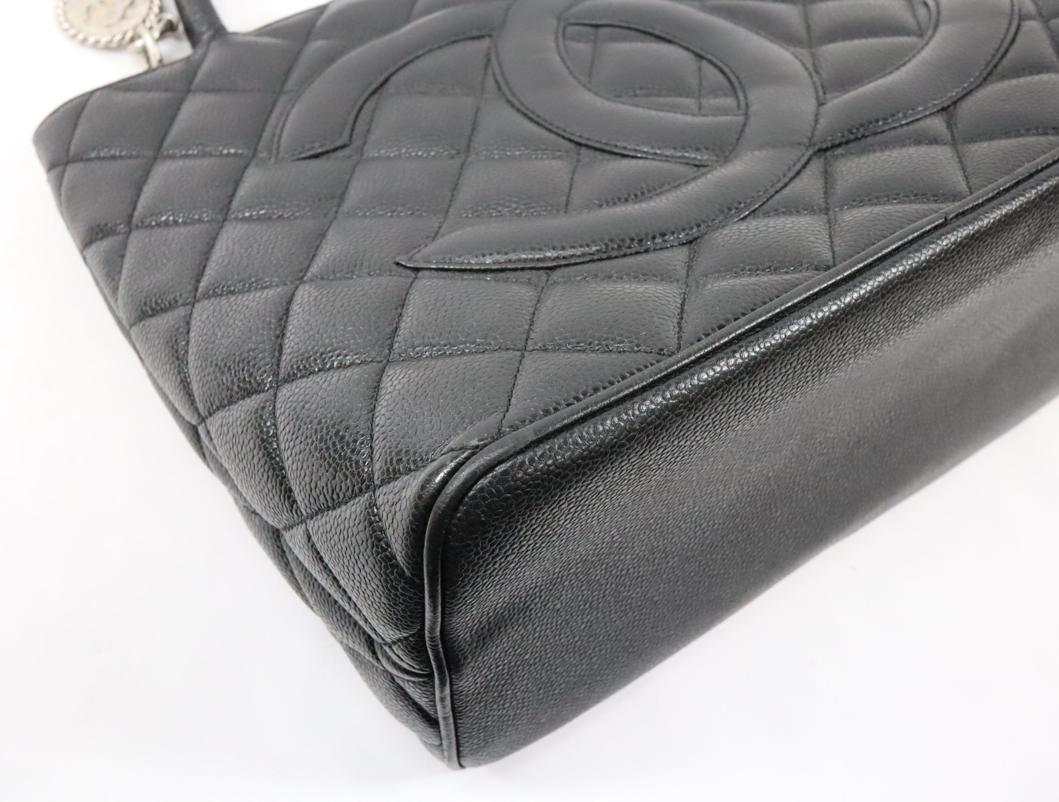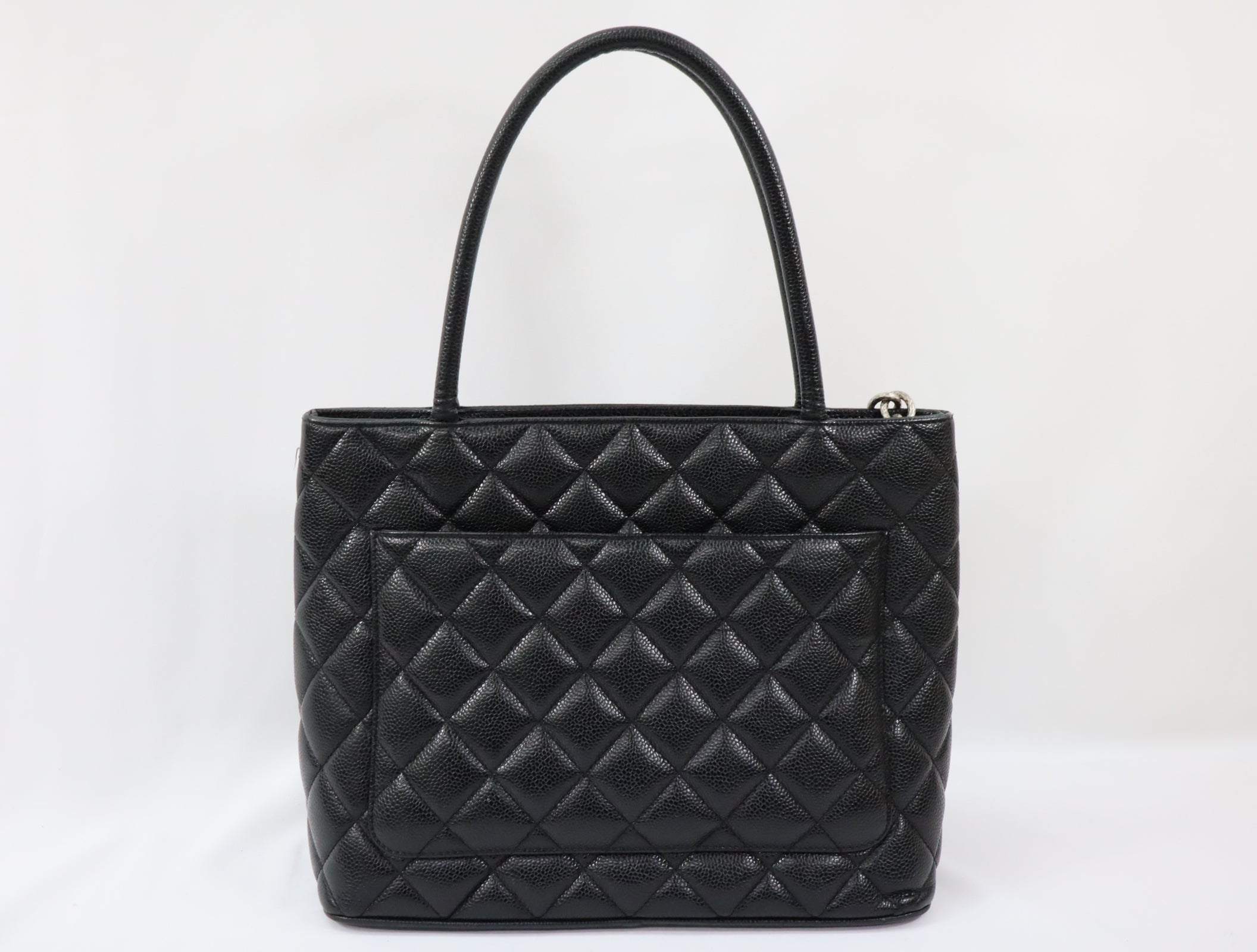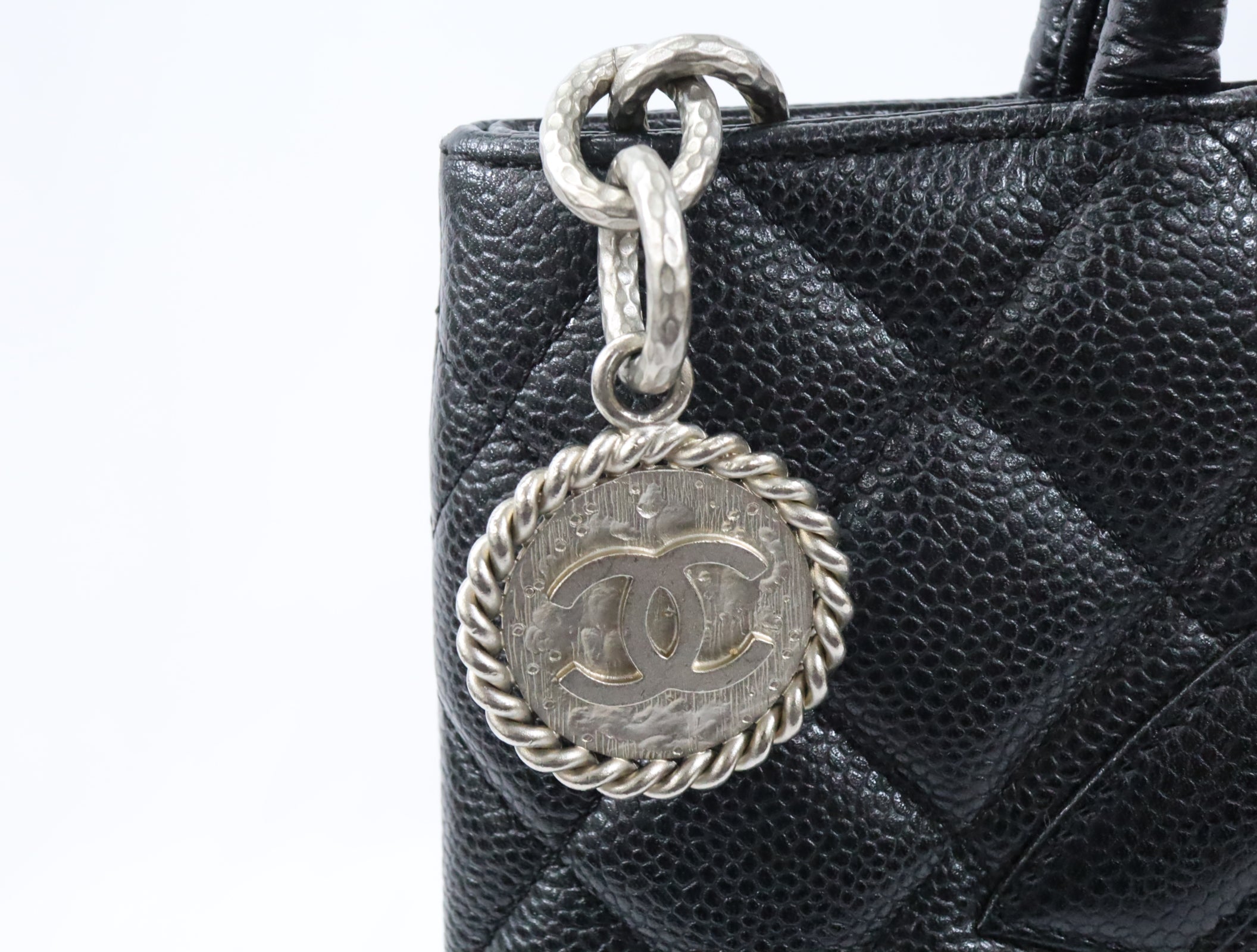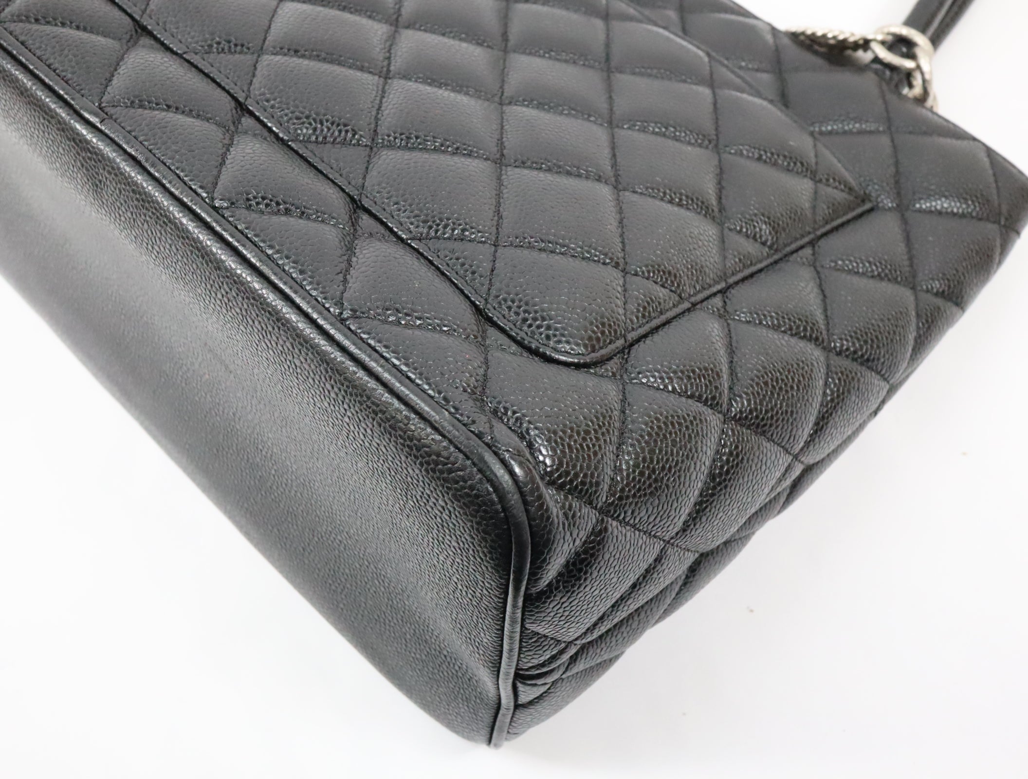 Pre-Owned #31989 CHANEL Matelasse Reprint Tote Bag Caviar Skin Black Silver