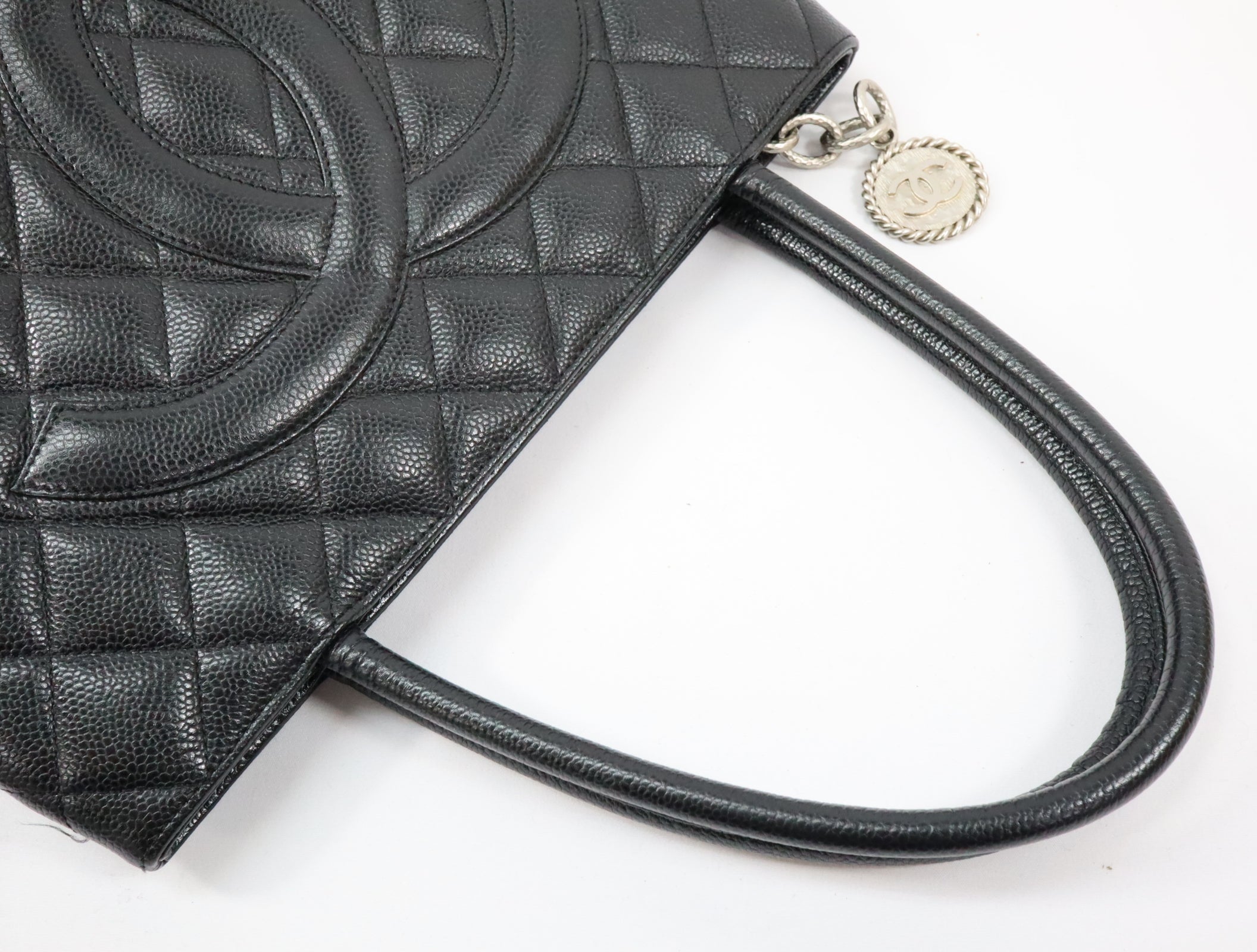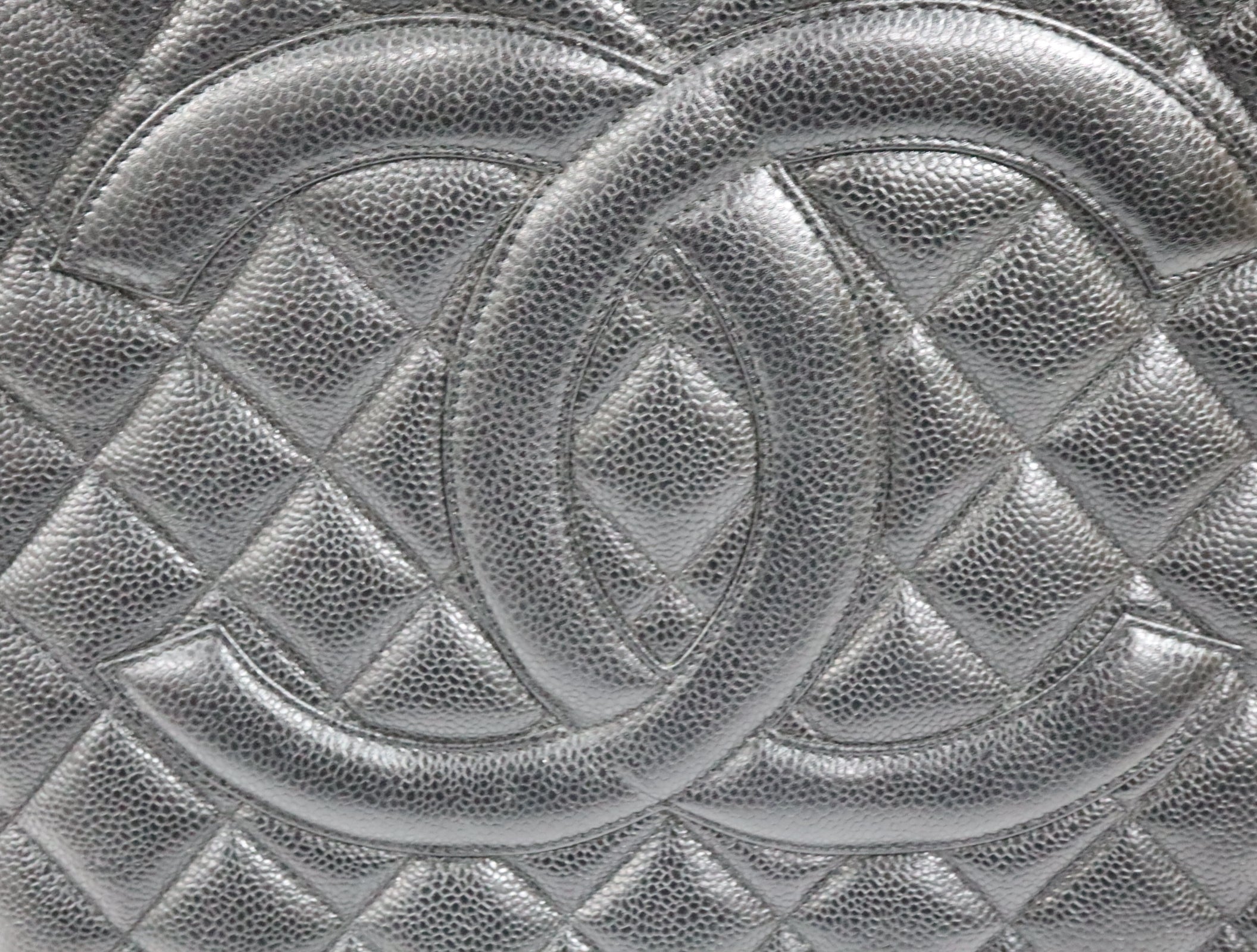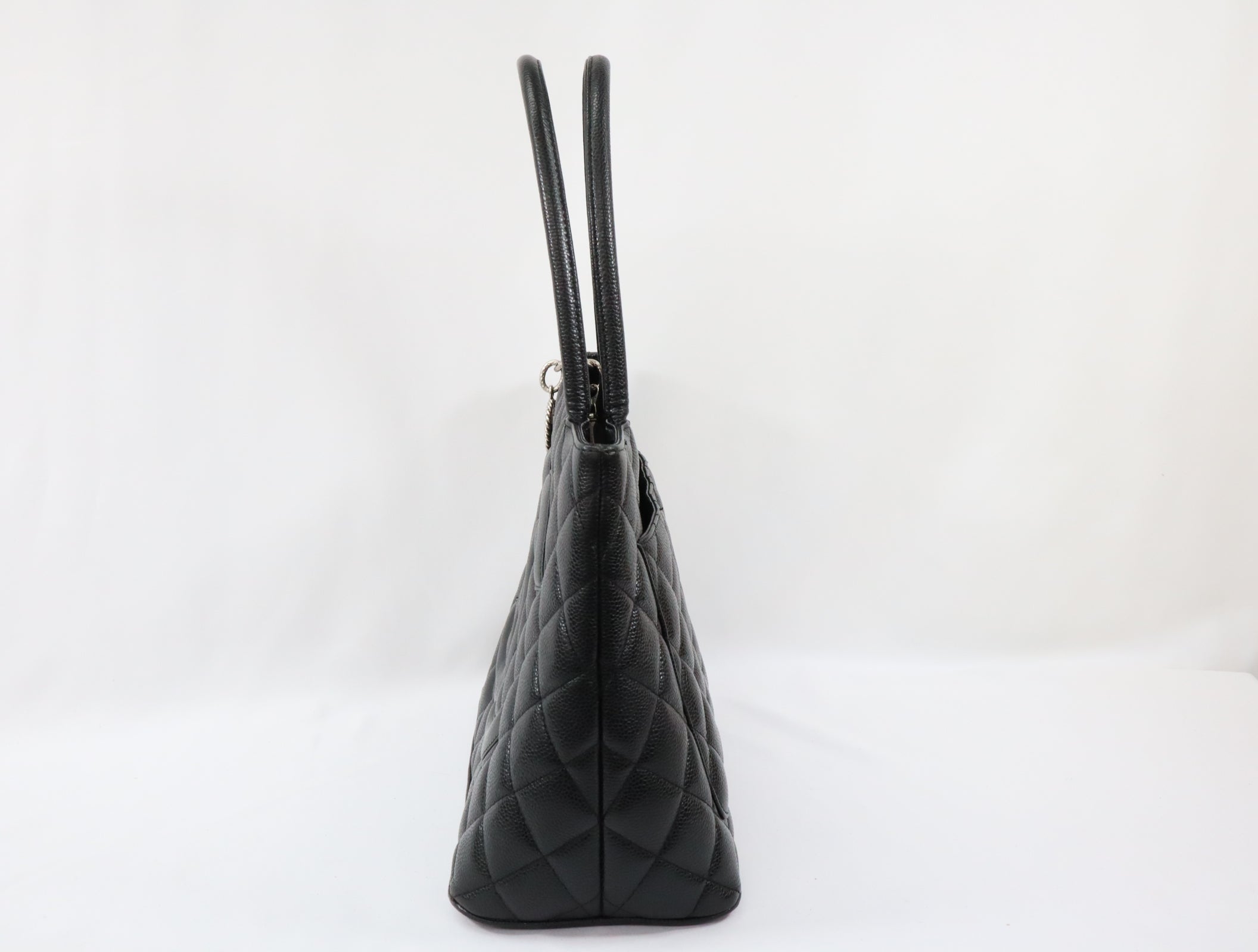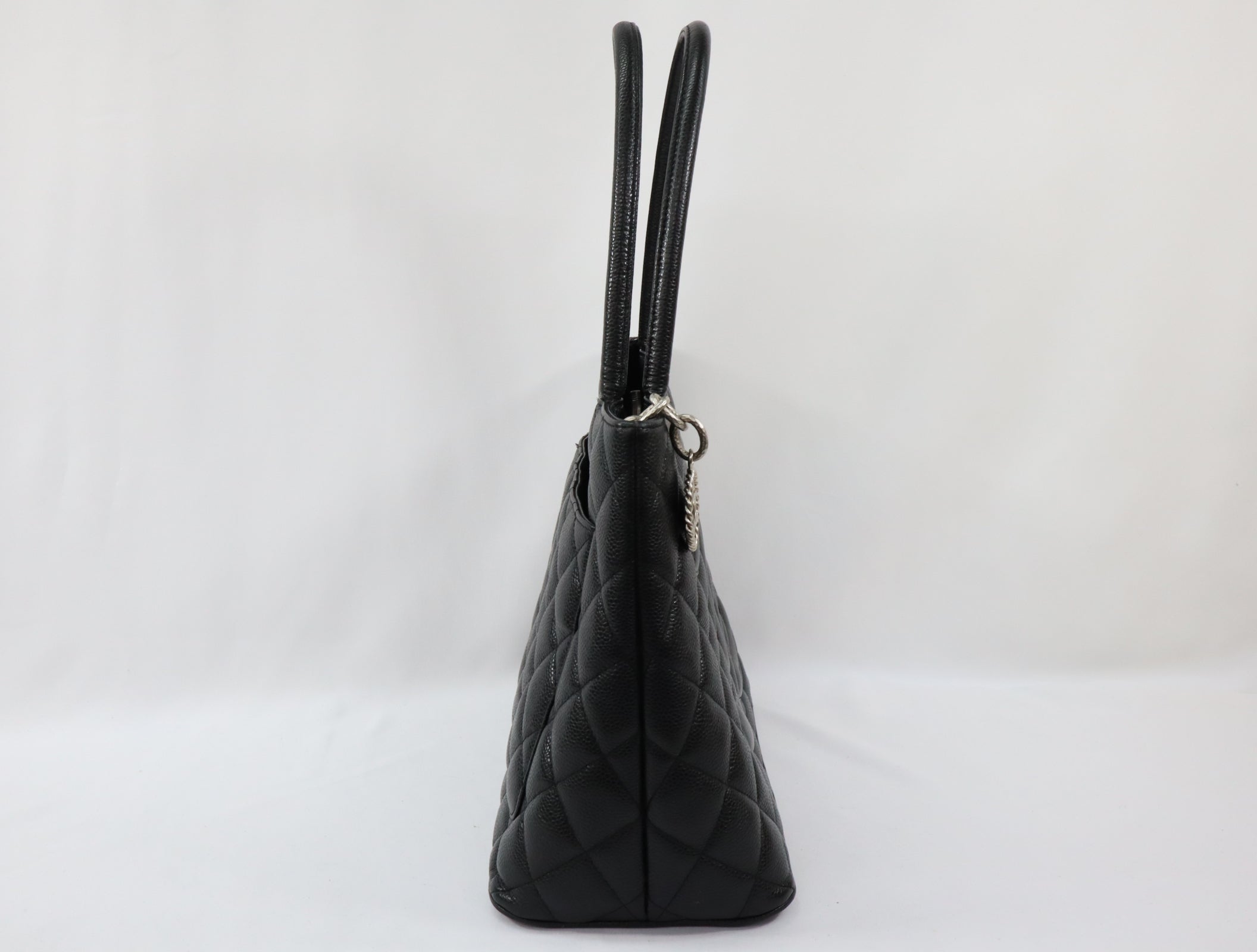 Pre-Owned #31989 CHANEL Matelasse Reprint Tote Bag Caviar Skin Black Silver